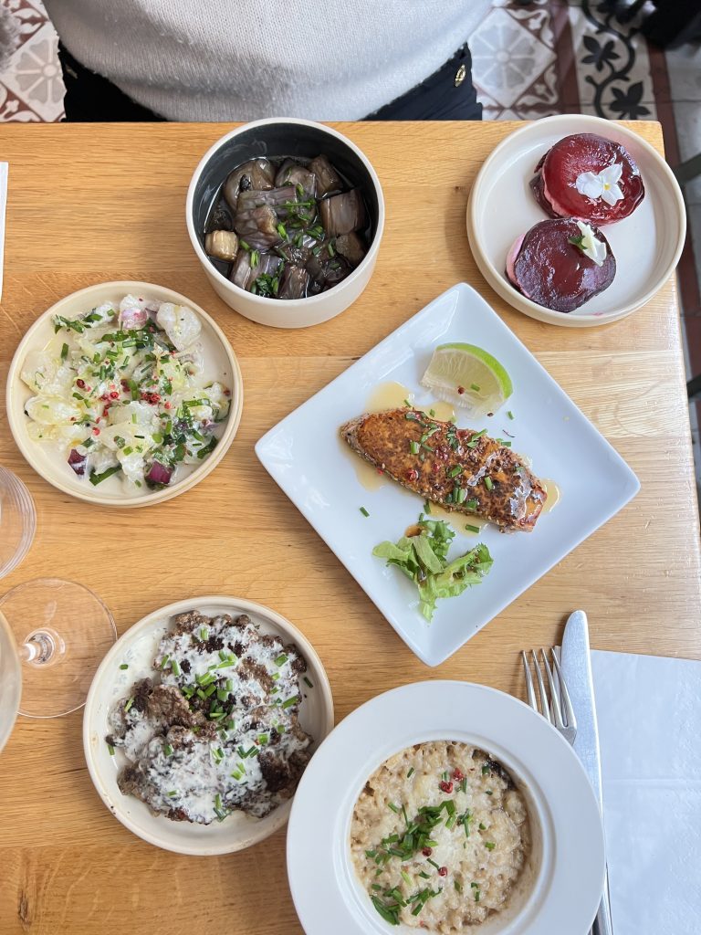 We stumbled upon Les Petites Bouchées, a small-plates restaurant that’s perfect for sharing. We chose 6 dishes for two people — plenty of food, delicious variety, and even vegan-friendly options. Add a glass of French wine and you’re set.