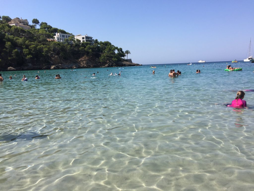 There’s a small chiringuito for drinks and snacks on the beach or you can go to S’esponja Puerto Portals restaurant which has a stunning view of the beach and order some tapas or the catch of the day.
