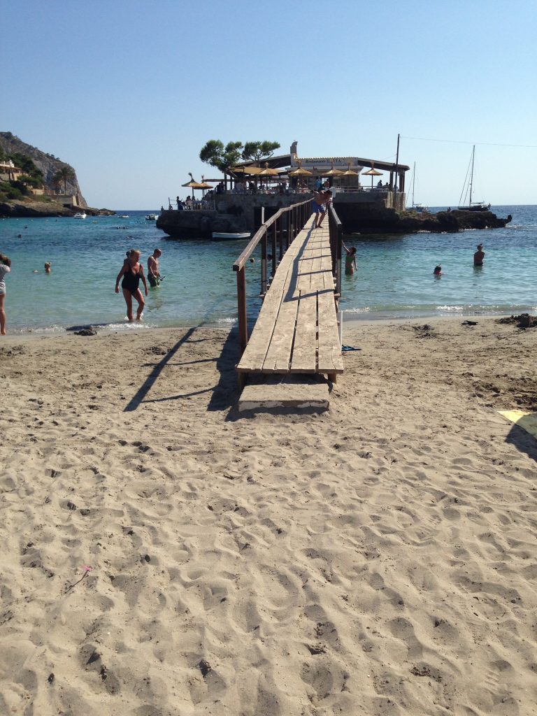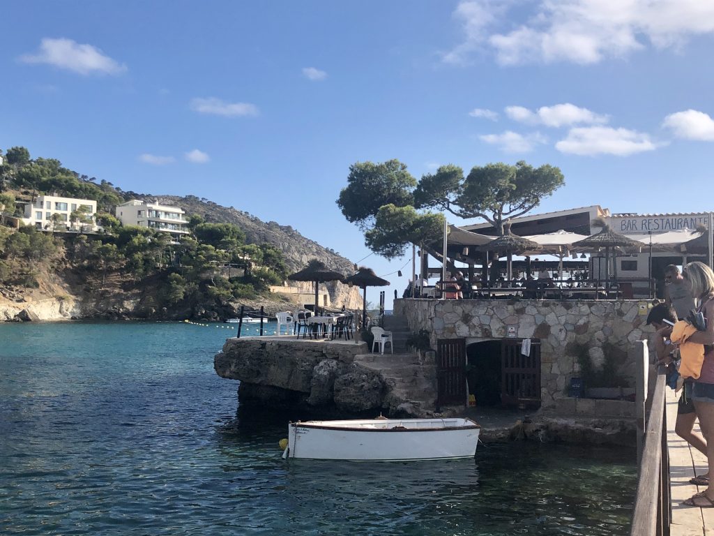 Camp de Mar is on a family beach resort and golf area in the southwest of Mallorca, with a great little restaurant on a small island.