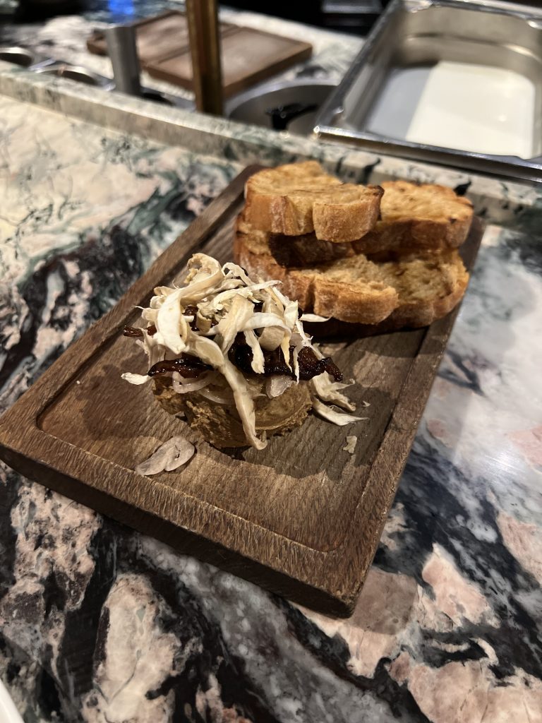 The decor is amazing with a view of Canary Wharf. The wide-ranging menu offers something for everyone, we tried so many amazing dishes, but the one that stands out is the famous mushroom parfait, also served in Fallow. This is SO SO good, like a foie gras but vegan.
