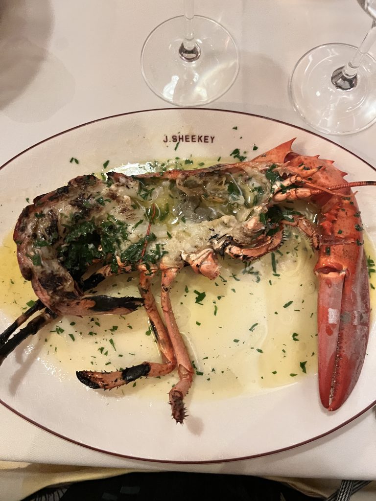 Last time we went there, we splurged out and ordered caviar and lobster, but you can go for ‘a plateau de fruit de mer’ or a simple shrimp and soft shell crab burger.
