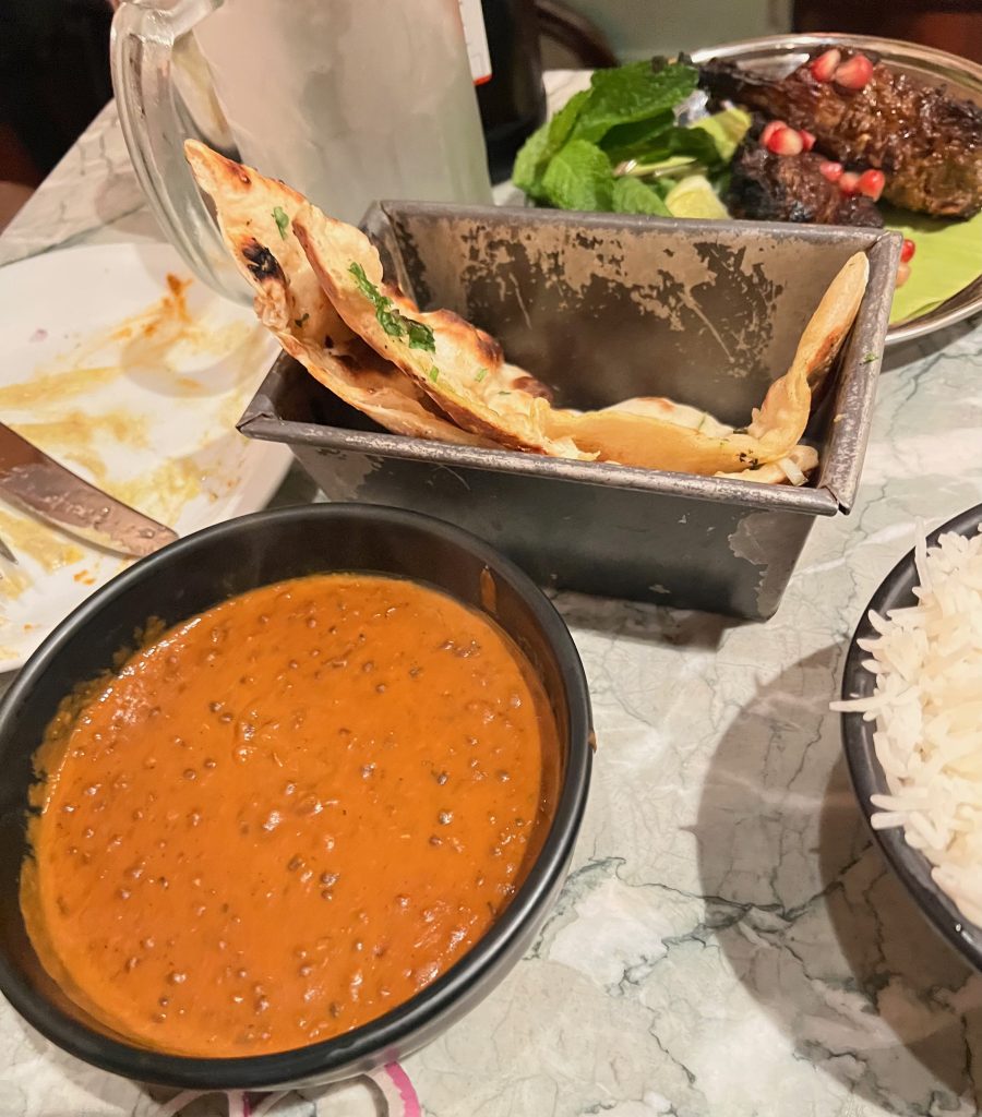 A special mention to the House Black Daal, the chicken ruby or the tikka masala, the spicy lamb chops, roomali roti and garlic bread. You can also enjoy the bottomless house chai and end your meal with a delicious ice cream called Malai Kulfi.