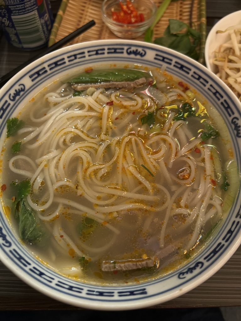 The menu features all the classics: pho with rich broth and tender meat, bún (vermicelli noodle bowls), crisp spring rolls, and stir-fried dishes bursting with flavour. Everything is freshly prepared, light yet filling, and served in generous portions.