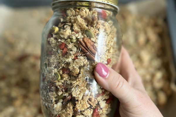 My sister gave me this idea. She offered me a jar of homemade granola a few months ago and I have finally decided to make my own granola. Ingredients: 300 gr of oatmeal 40 gr of pumpkin seeds 40 gr of sesame seeds 40 gr of pecan nuts (to be added at the end) 1 tablespoon of ground cinnamon 4 ...