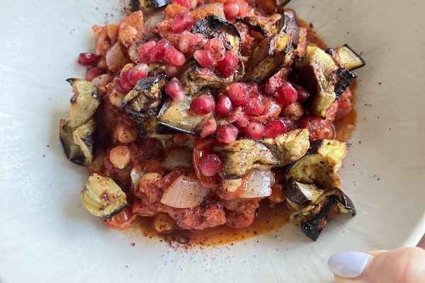 A great vegan recipe with aubergine, chickpeas, tomato sauce and Lebanese spices.