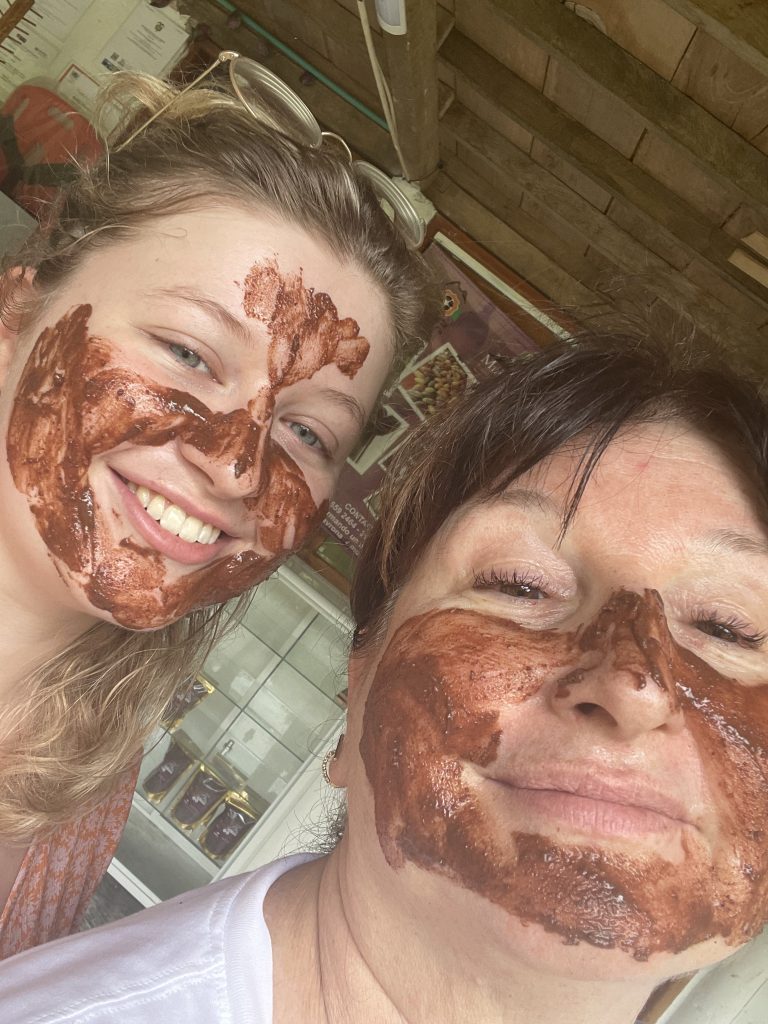 Nearby, we visited a cacao farm, Cacao de La Sierra Nevada, where we learned the journey from pod to chocolate bar. Cracking open cacao pods, roasting, grinding and then a chocolate facial for good measure! Educational, delicious, and hilarious all at once.
