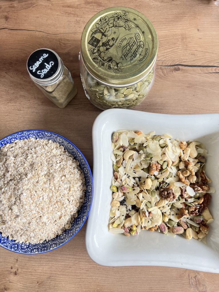250 gr mix of nuts and seeds (flacked almonds, cashews, walnuts, pumpkin seeds, sesame seeds, pistachios)
