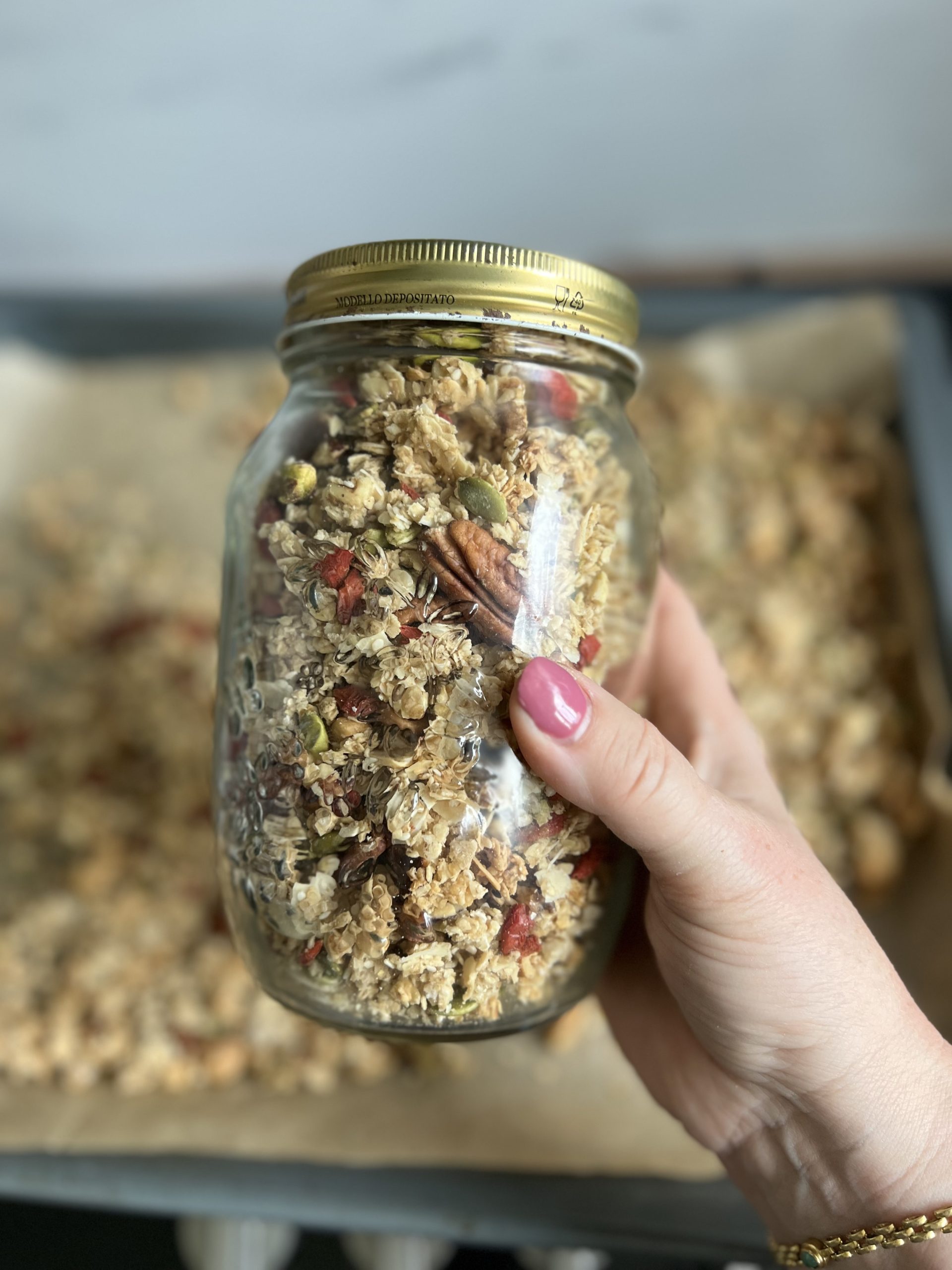 Once the granola has cooled down you can store it in jars, that’s if you don’t have your kids around to eat it all.