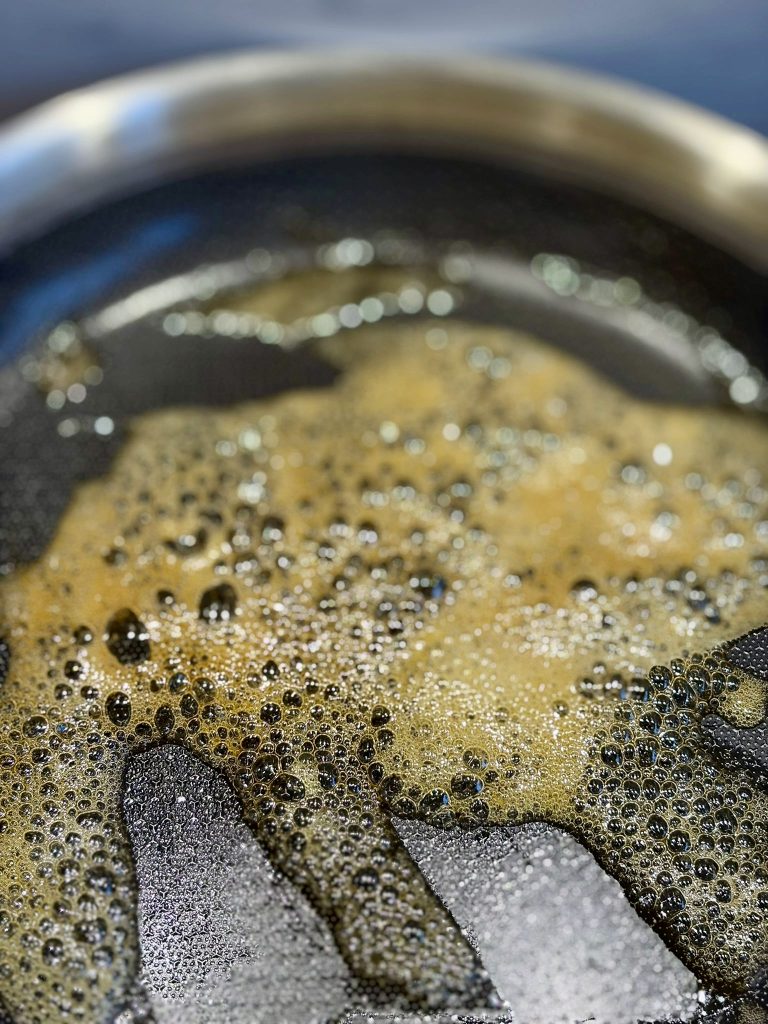Heat the runny honey in a small saucepan until caramelized.