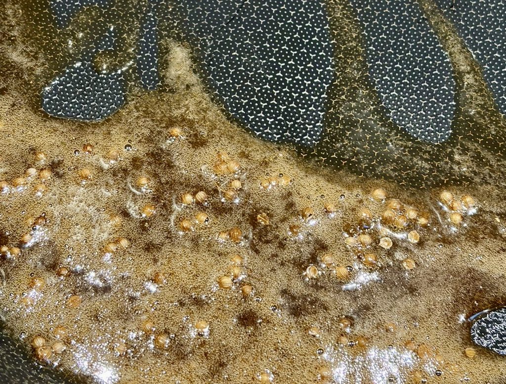 Turn them over and bake for another 3 minutes. Pour the spice mixture over the skin and caramelize for 1 minute under the grill, or until the skin is nice and crispy.