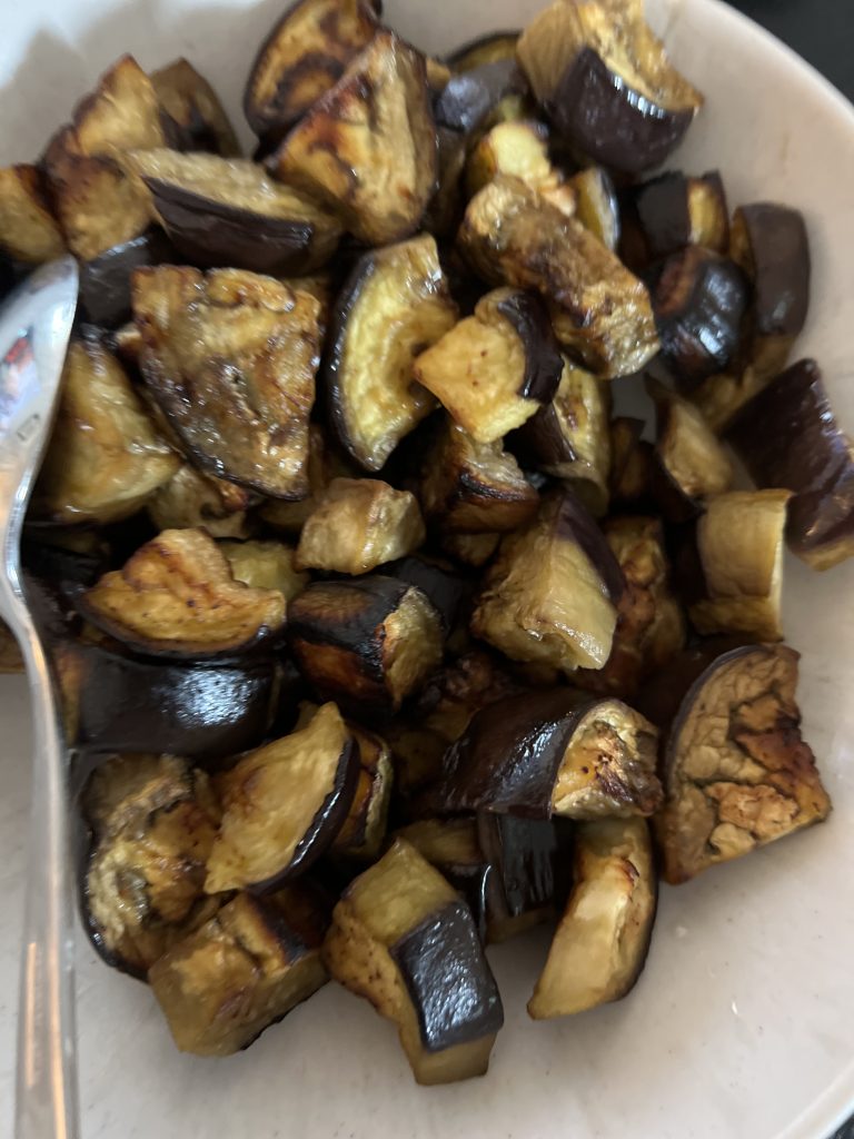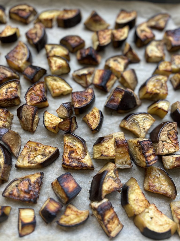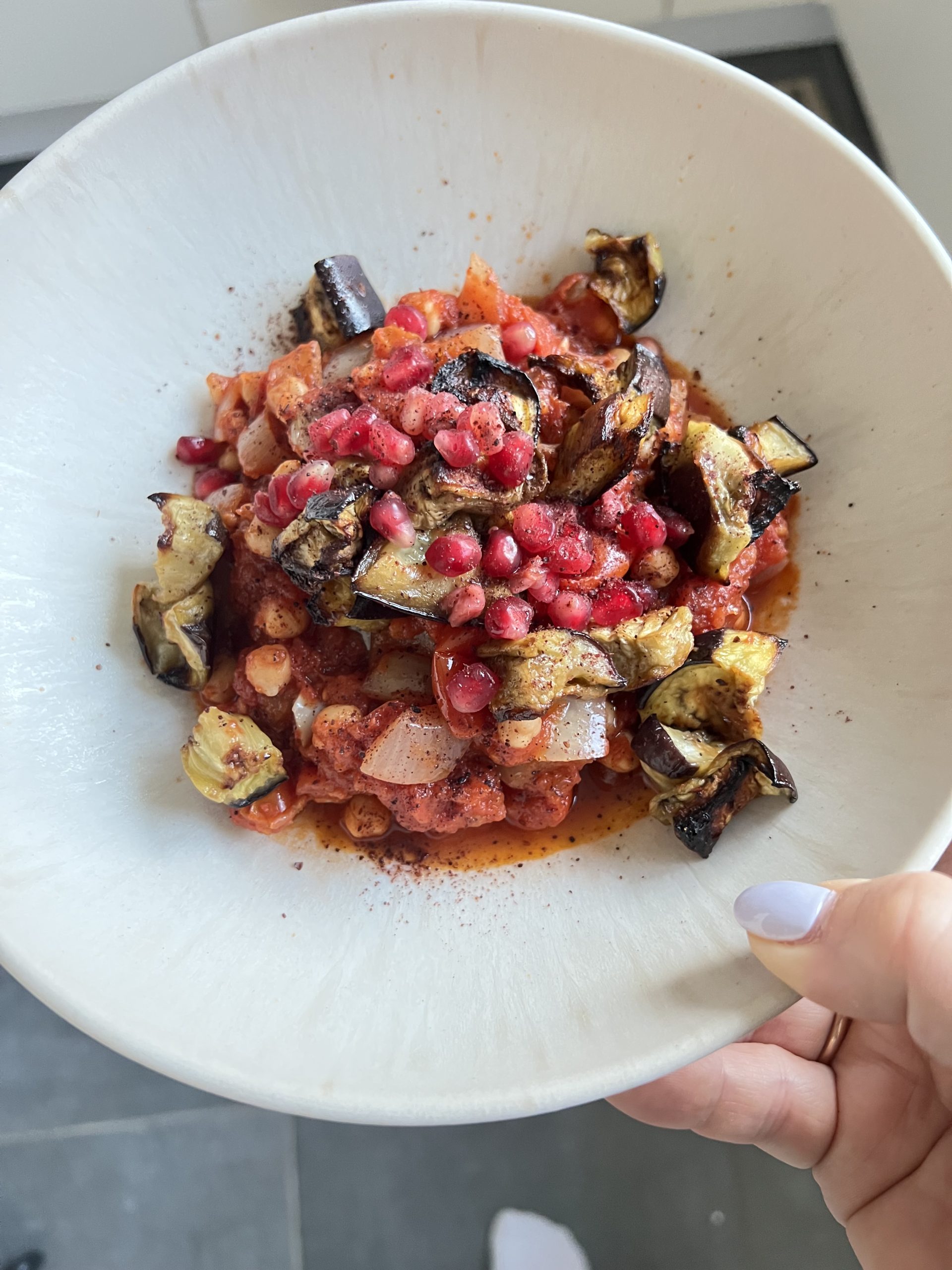 8. I add the aubergines at the end with the pomegranates and Za’atar