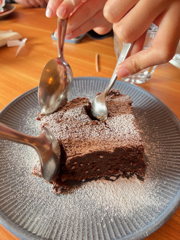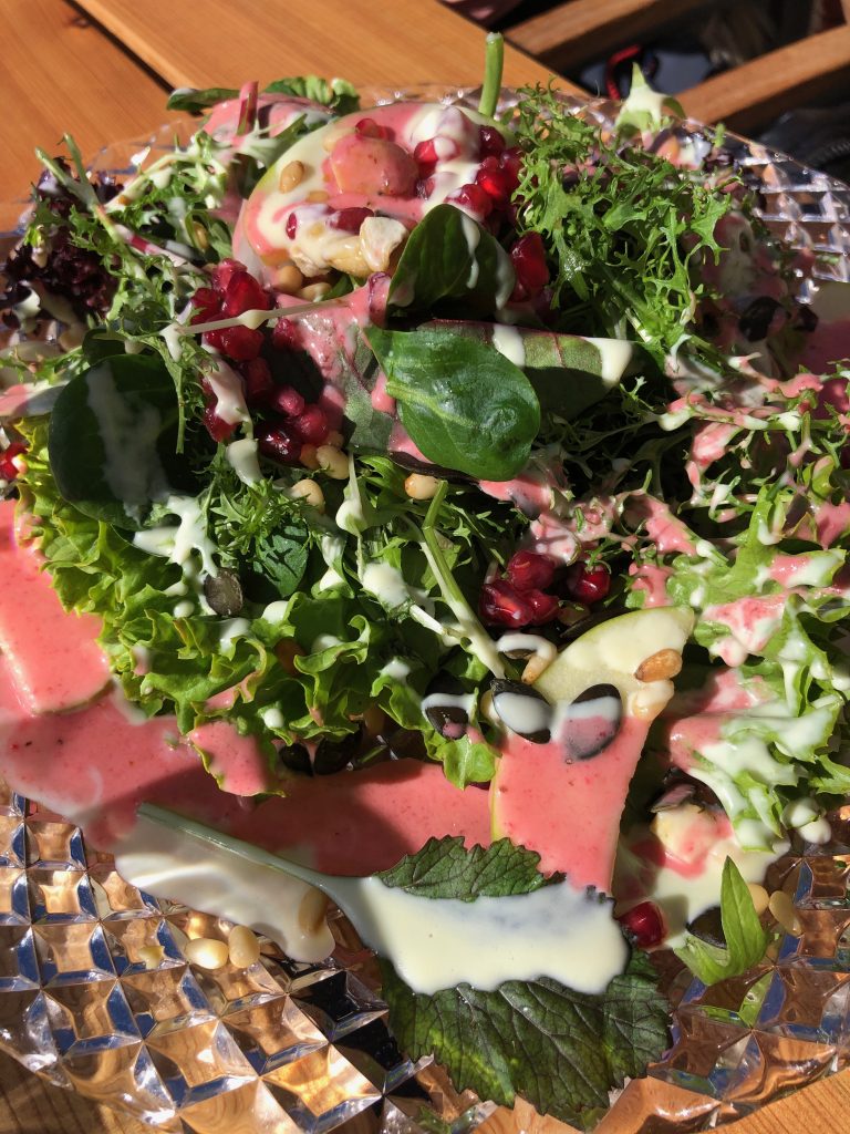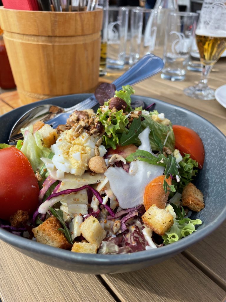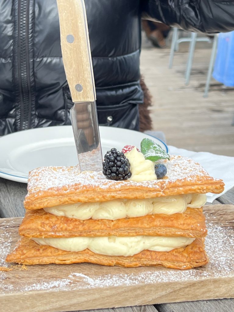 This terrace is amazing, you can enjoy the view of Hornli express and soak up the sun. They suggest a special gourmet cuisine lunch inspired by Beat Caduff for CHF 65 (starter-main course or main course, dessert). We have never tried it, as we usually eat a light lunch to be able to order the legendary giant „Millefeuille“ cream cake.