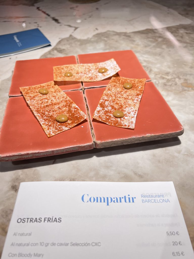 Dinner at Compartir in Barcelona was an unforgettable experience. We chose the tasting menu, which turned out to be a perfect showcase of creativity and flavour.